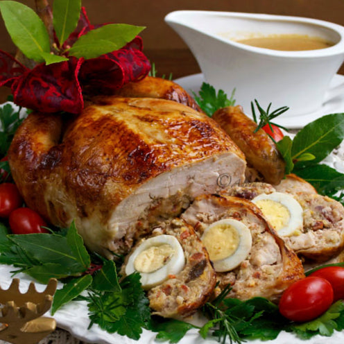This Rellenong Manok (Whole Stuffed Chicken) is a showstopping Filipino feast, where a whole deboned chicken is generously stuffed with a savory mix of ground pork, flavorful spices, and delightful surprises like hard-boiled eggs. Baked to a beautiful golden brown, it's a labor of love that promises a succulent, satisfying bite. This impressive dish is perfect for special occasions, guaranteed to leave your guests raving!